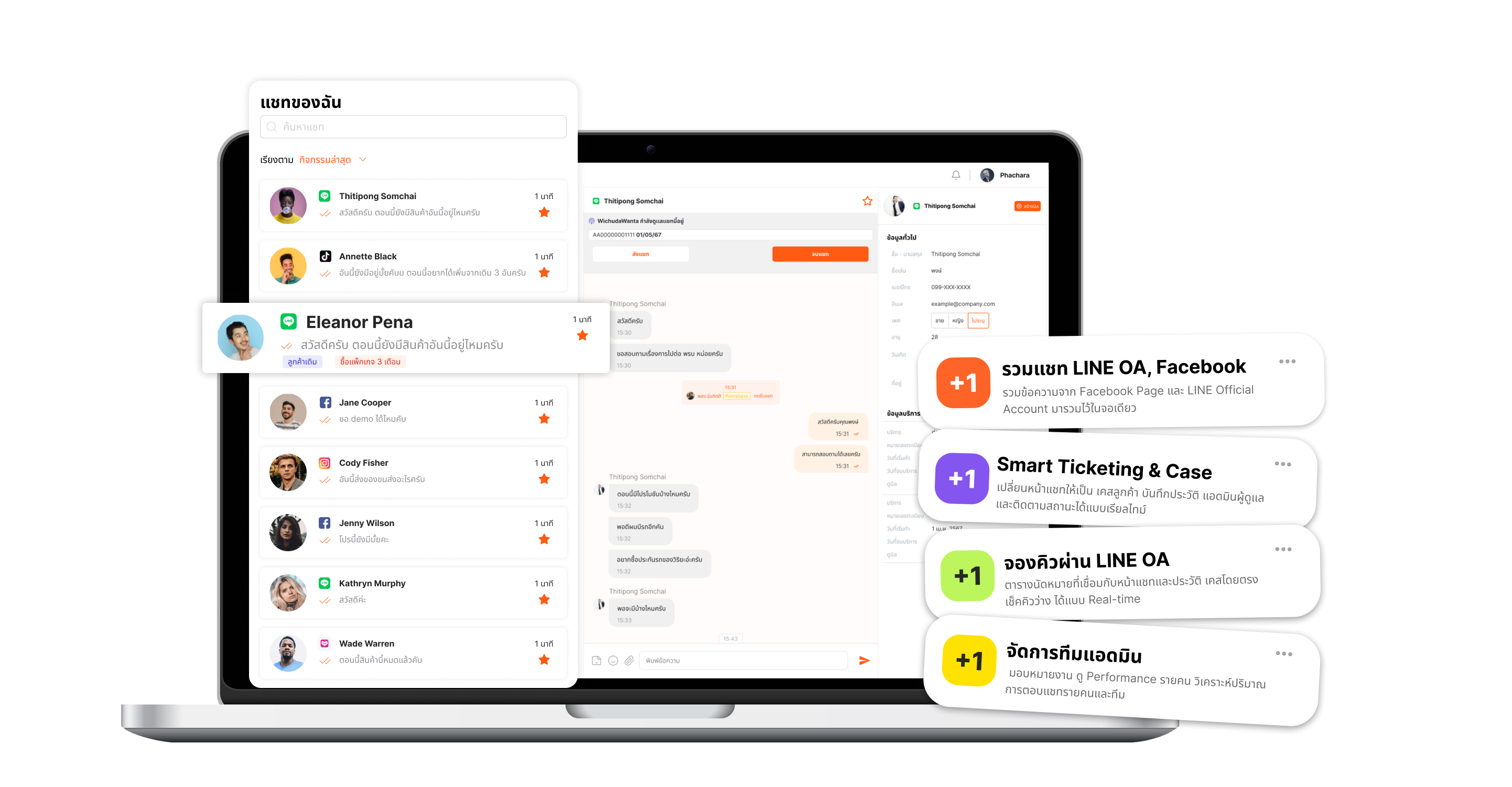 - Multi-Admin System: แอดมินล็อกอินตอบพร้อมกันได้ไม่จำกัด ไม่ว่าจะประจำสาขาไหน ก็ทำงานร่วมกันได้บนมาตรฐานเดียว